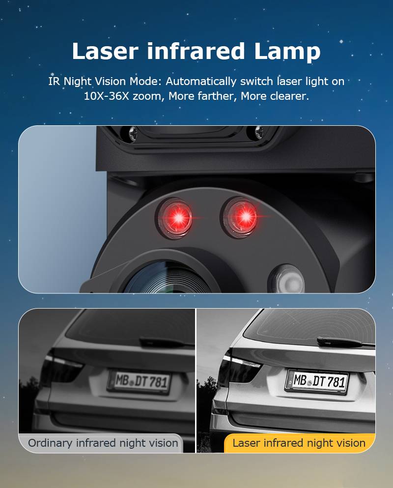 Die PTZ-Solarkamera W-lan das leistungsstärkste in unserem Sortiment: 36-facher Zoom, 150 Meter Laser-Nachtsicht und ultra-widerstandsfähige Vollmetallkonstruktion.