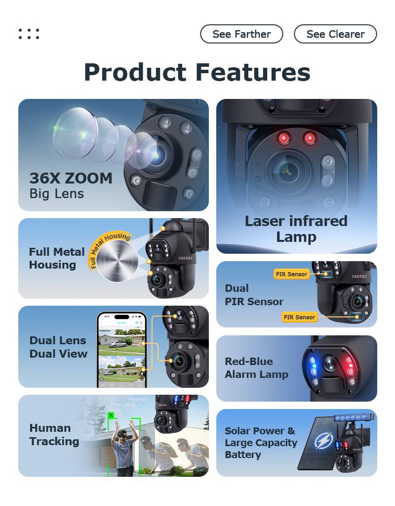 • Double objectif intelligent : un grand angle et un téléobjectif pour une surveillance complète.